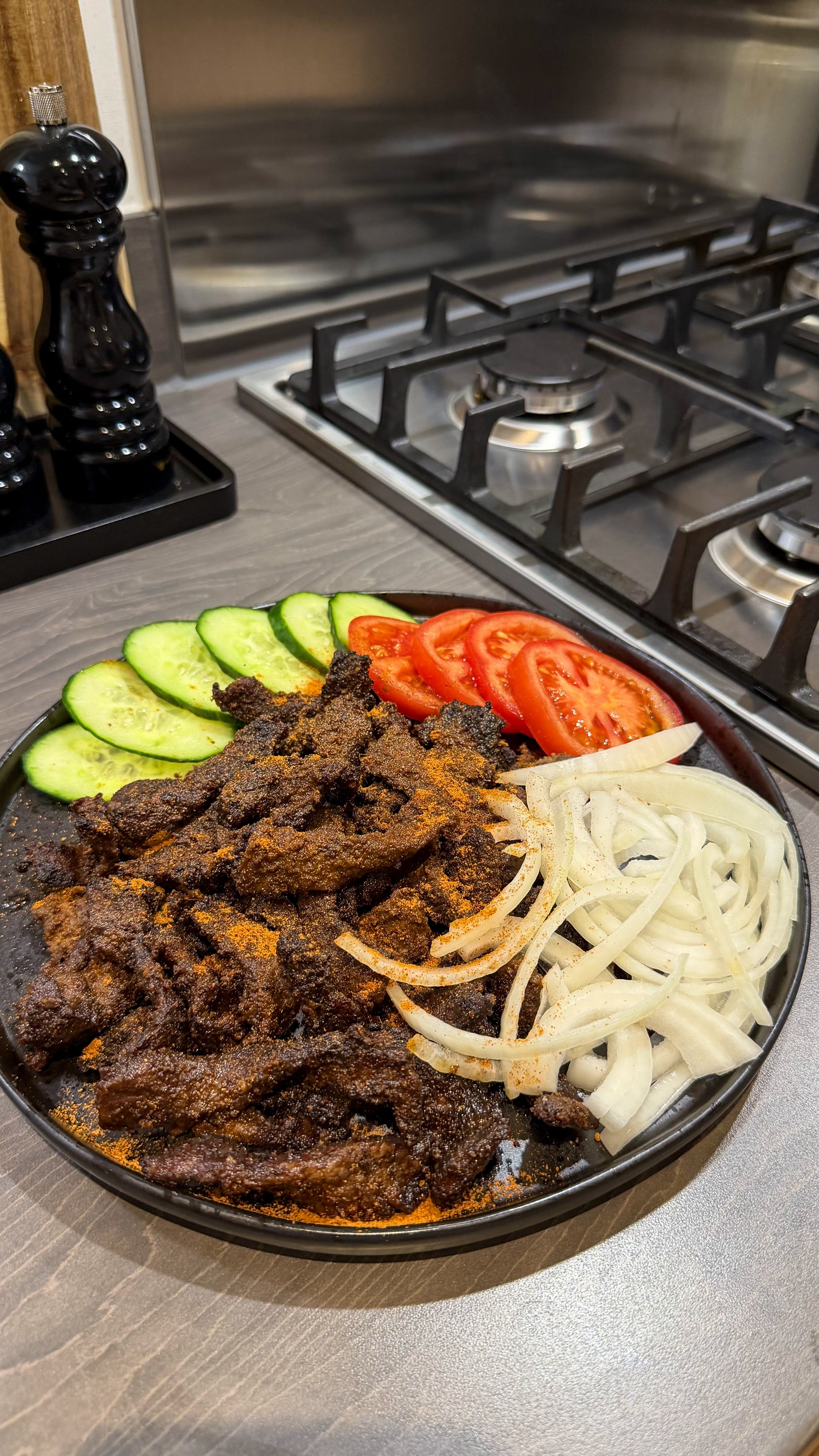 The result is smoky, spicy, and savoury, with a unique depth of flavour that comes from the peanut-based seasoning. Beef Suya is typically served with sliced onions, tomatoes, cabbage, making it both vibrant and comforting. It's a street-food favourite that also fits beautifully into home cooking.
